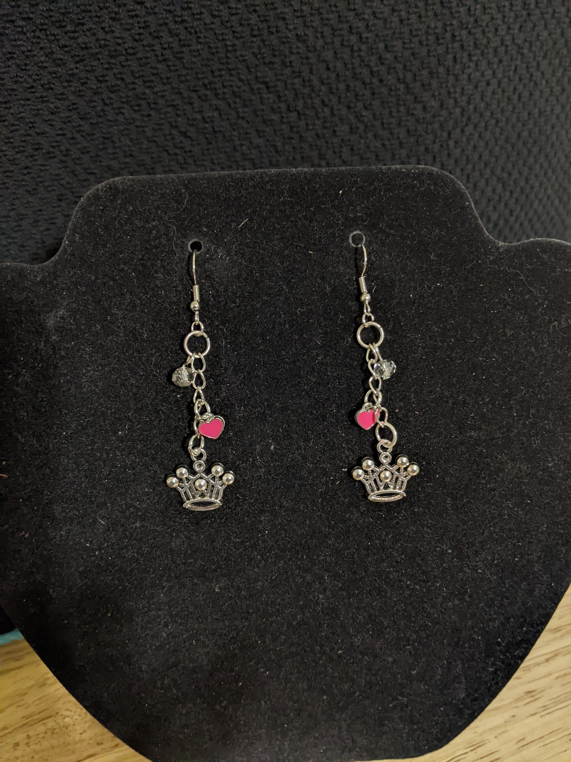 Princess Themed earrings-Heart & Crown-great gift! Item-EAR27