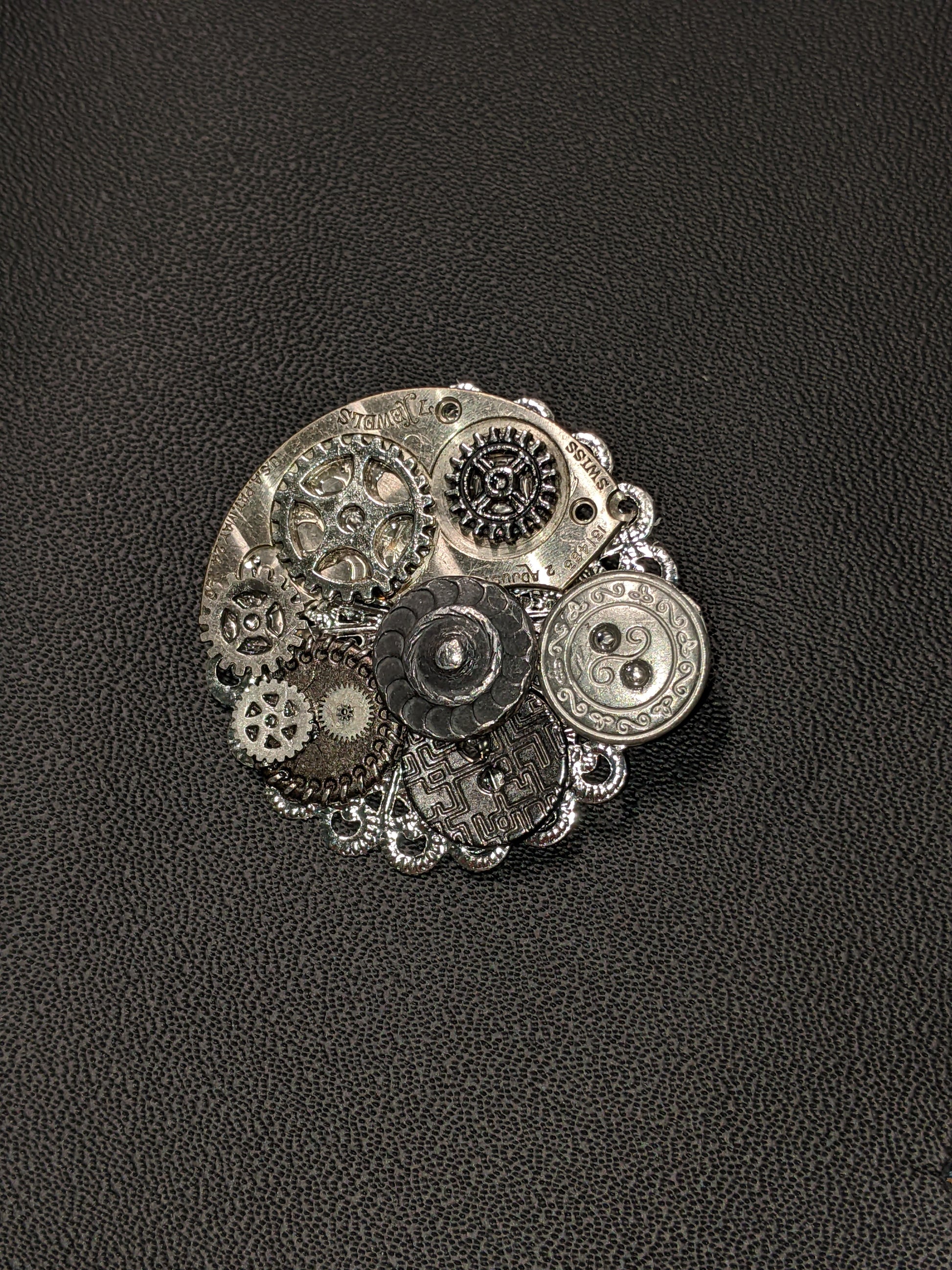 Steampunk Themed Brooch-Unique Charm Pin! With real watch parts-TOP3