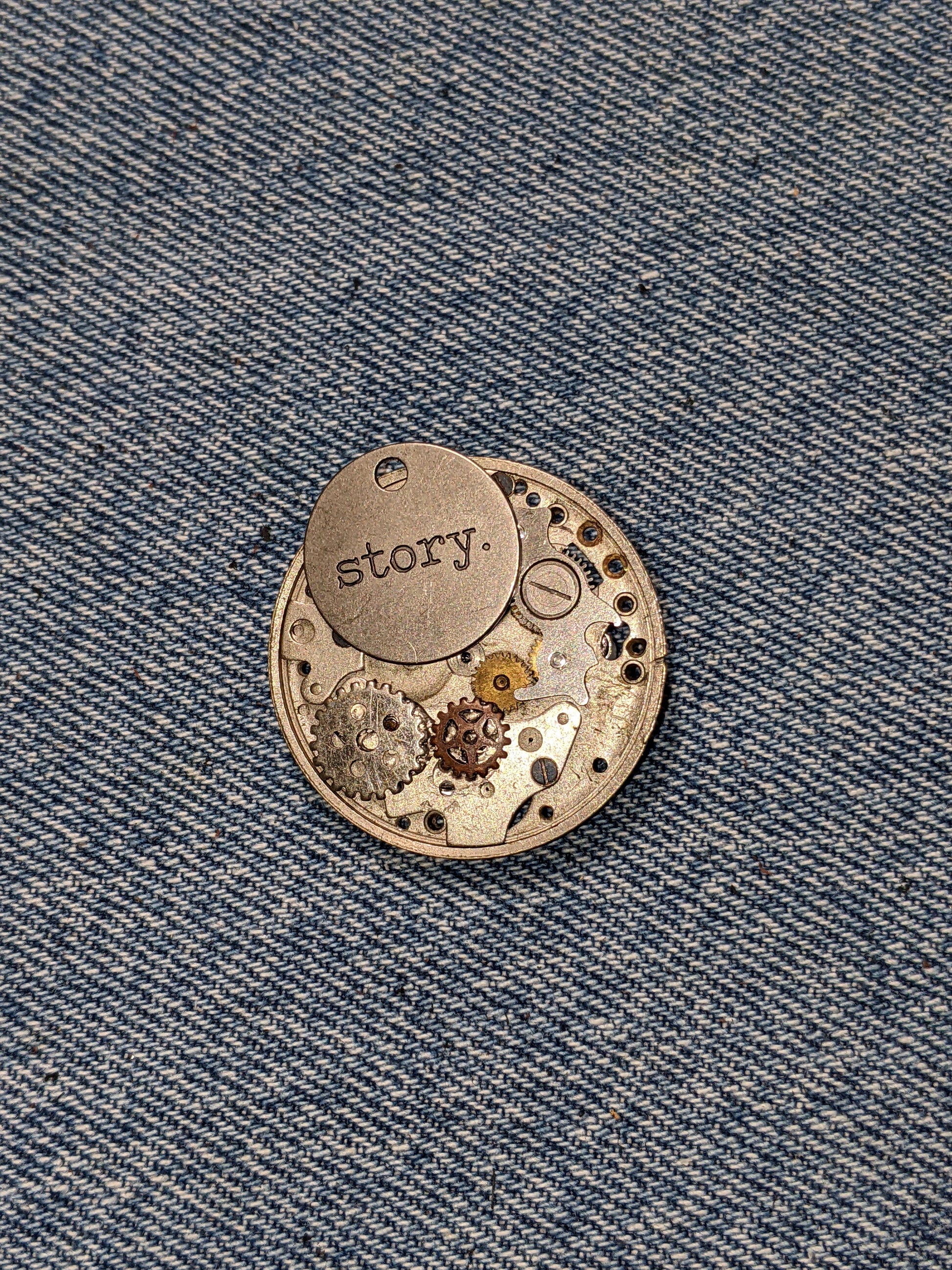 I handcraft each of these pins/brooches, with real watch parts, vintage buttons, vintage jewelry pieces and unique charms to create a one of a kind piece of jewelry! No 2 pins are ever alike, so you are truly buying a one of a kind item!