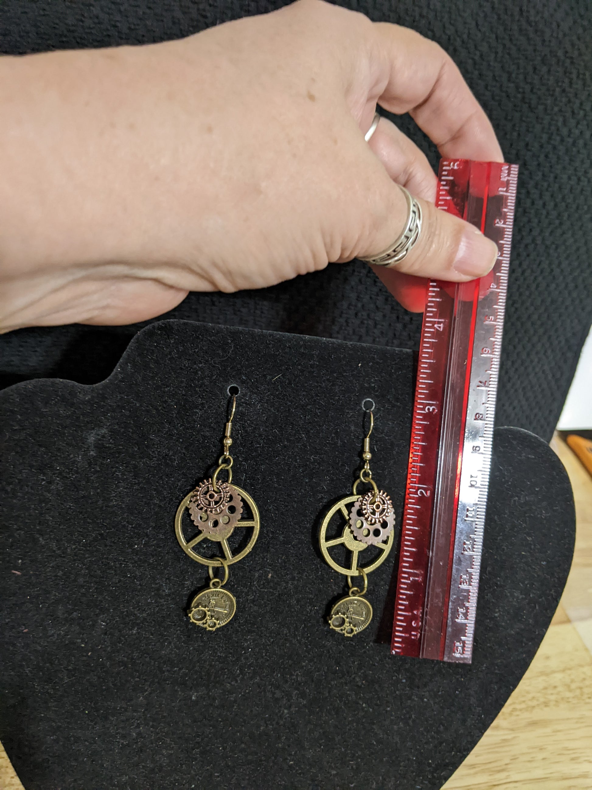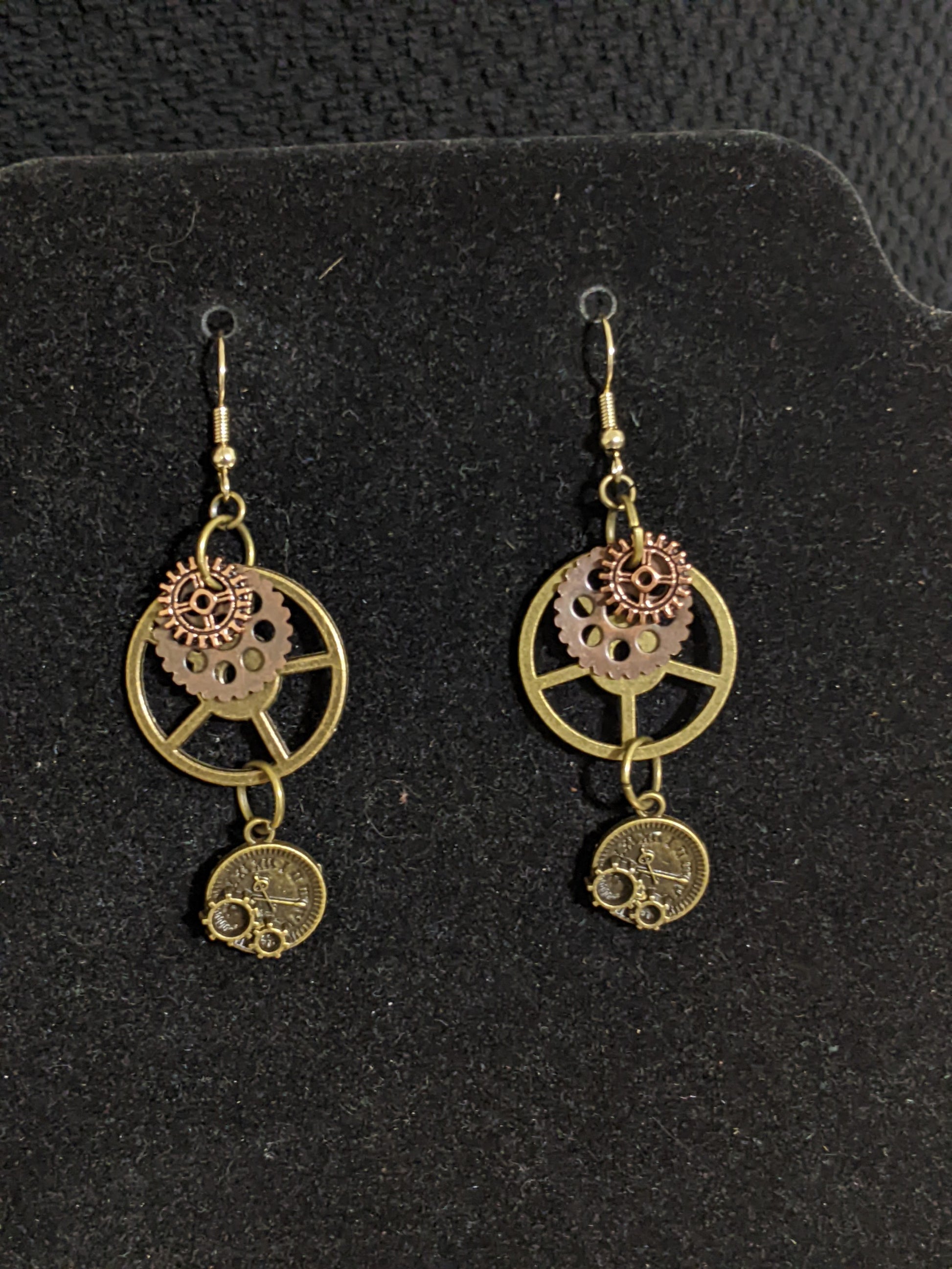 These earrings make a great gift or keep them for yourself! Each pair is handcrafted by me, and unique. I use a variety of charms, chain and/or gears to create my earrings.