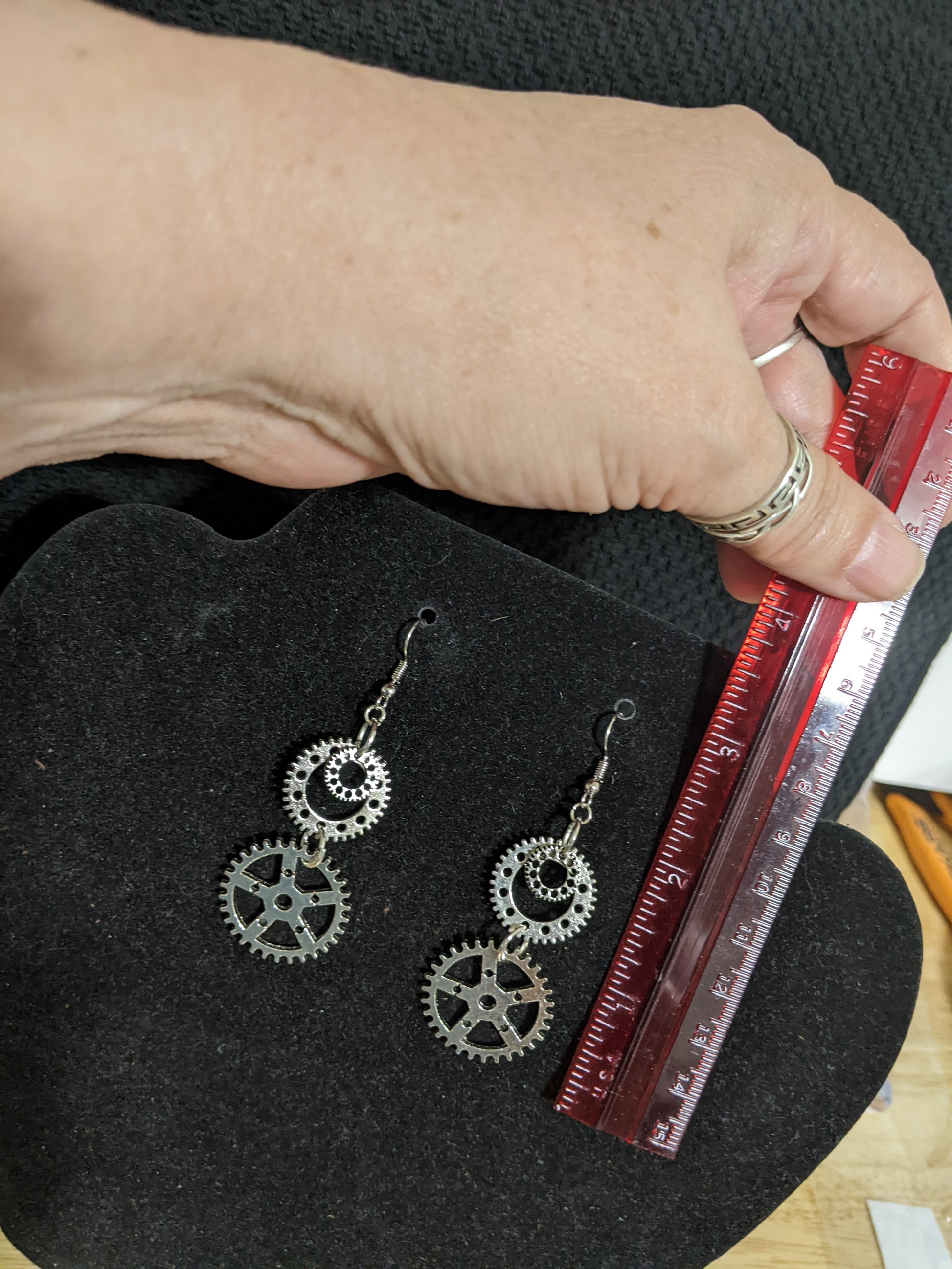 These earrings make a great gift or keep them for yourself! Each pair is handcrafted by me, and unique. I use a variety of charms, chain and/or gears to create my earrings.