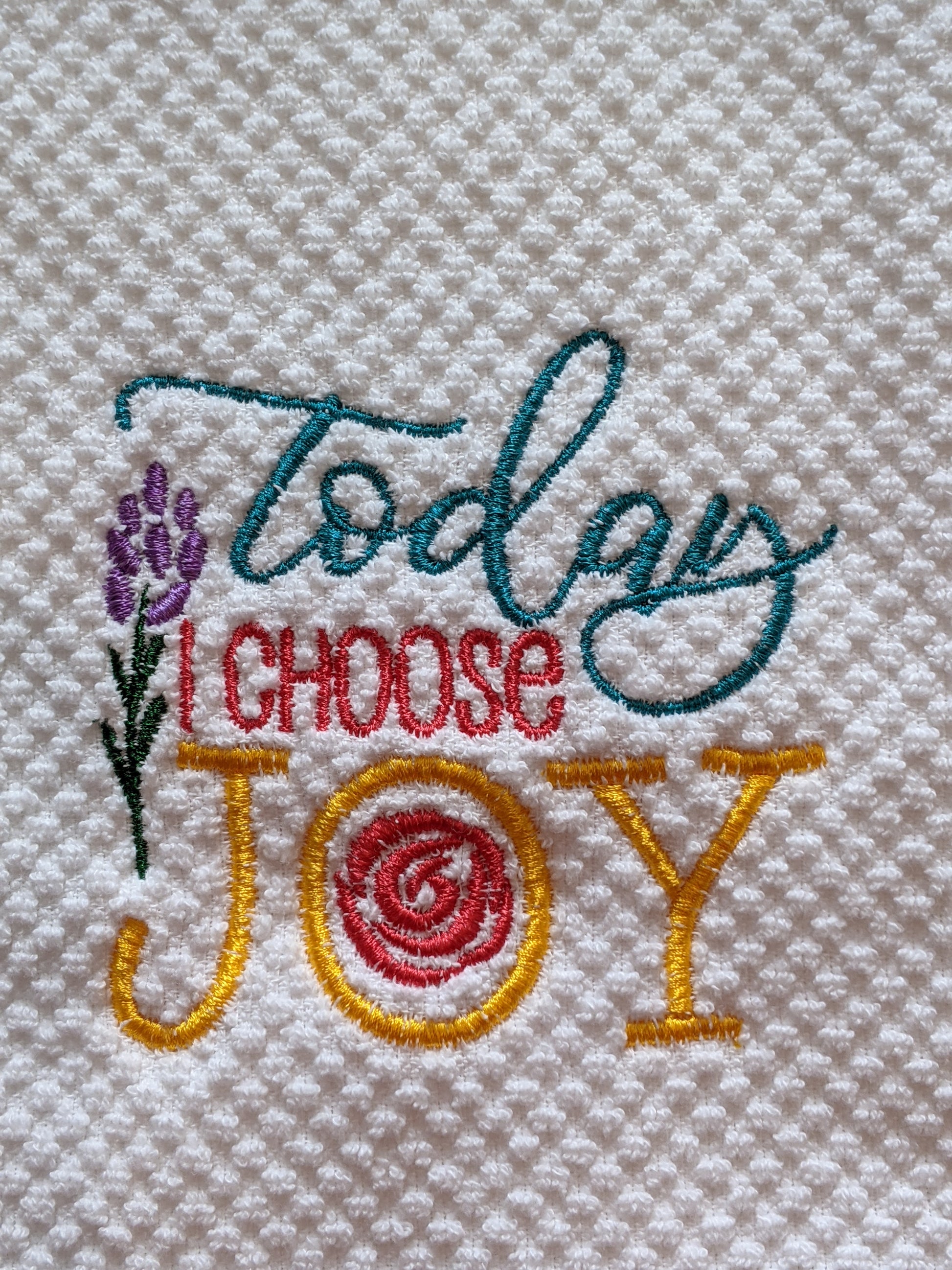 This is an embroidered kitchen towel with "Today I Choose Joy". This would be a great gift or just treat yourself to a new towel for your kitchen or bath!